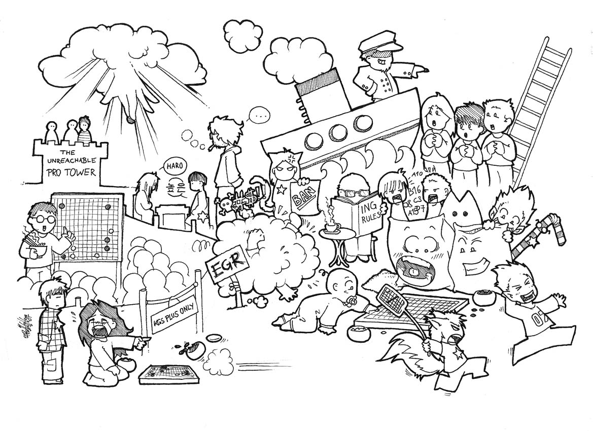 I can see bum(Jan Simara) smoking, sum(Robert Jasiek) reading ING rules, Javaness (Ian Davis) as an Admin Squirrel and Maci saying "haro", as usual. |
