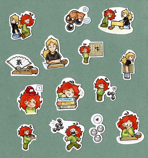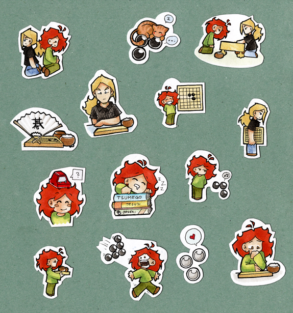 third batch of minis - I foil them and cut them out and attach a little string, making a little unique pendant out of each. I sell them at various tournaments I get invited to, mostly Berliner Kranich and the European go congresses.
