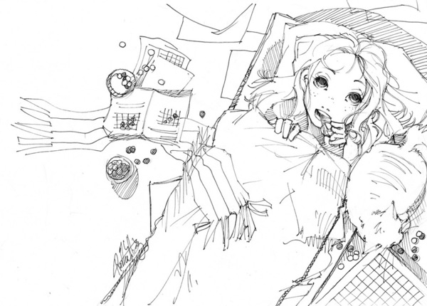 A friend sent me a breautiful short story she has written, about a girl discovering go through her older brother. It stirred so many nice memories in me about how I myself made my first steps in discovering the game through rei, so I made a small sketch to the story.