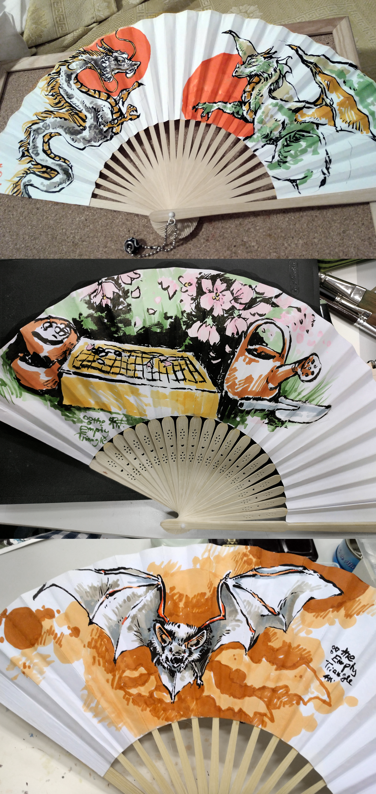 I have brought a bunch of empty paper fans to the EGC2018 in Pisa, Italy and drew various motives on them on request. Fans are one of my favorite medium to draw on at these events, because I can have a lot of freedom in terms of what is requested! I had to learn to draw things like dragons and bats for the first time.