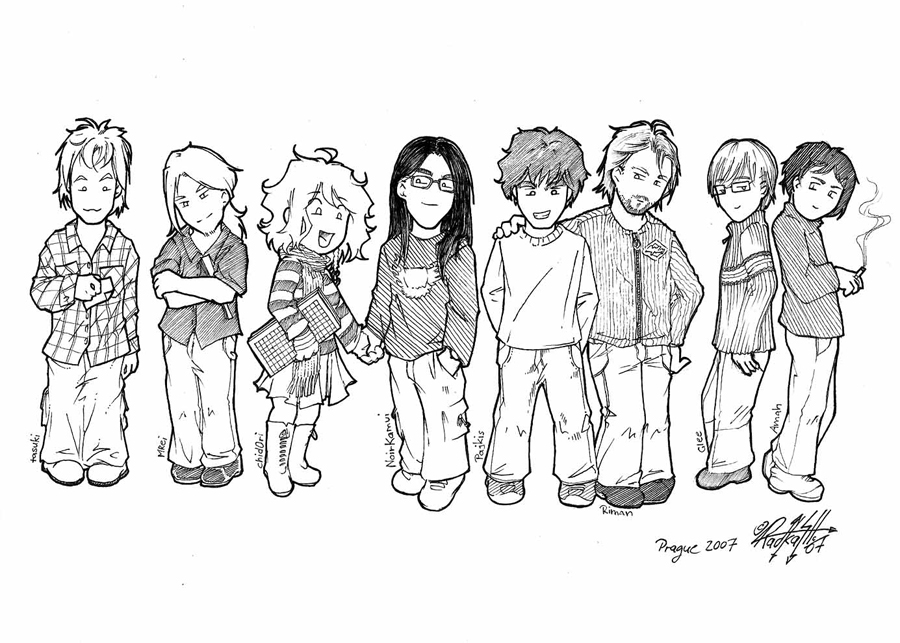 One of my absolute favourite ones - this are the people I met on a tourney in Prague in 2007. I spent a huge amount of time drawing it, but I am proud that the people on it actually recognised themselves :) By the way, the guy on the left should look familiar to those who read the comic (and if not him; at least his shirt) :)